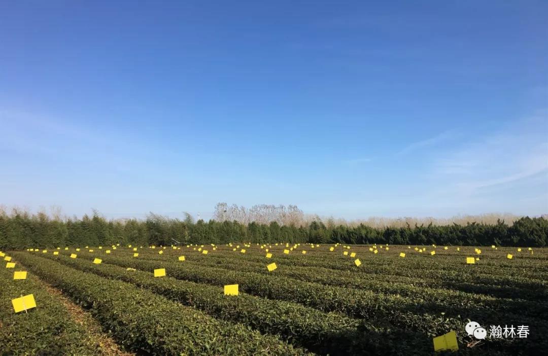 在这方封闭式茶园,为了给茶树除虫,瀚林春的绿色防控也是全方位的。这些间插在茶园中的粘虫板便是对茶树最体贴的保护。中科院院士陈宗懋还专程为瀚林春设计了最早的一批LED杀虫灯,为园区的绿色防控进行了研究和指导。