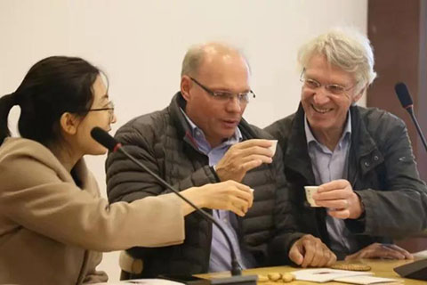 7月27日,欧洲茶叶学会副主席、丹麦茶叶协会主席亚历克西斯·凯伊,日本静冈茶叶研究中心原主任(技术)、静冈茶叶专家谷博司,中国农业国际合作促进会副会长吕明宜,中国农业国际合作促进会茶产业委员会常务副主任封槐松,茶产业委员会副主任李桂群到访瀚林春茶博园,日照城投集团党委副书记韩邦田陪同考察。