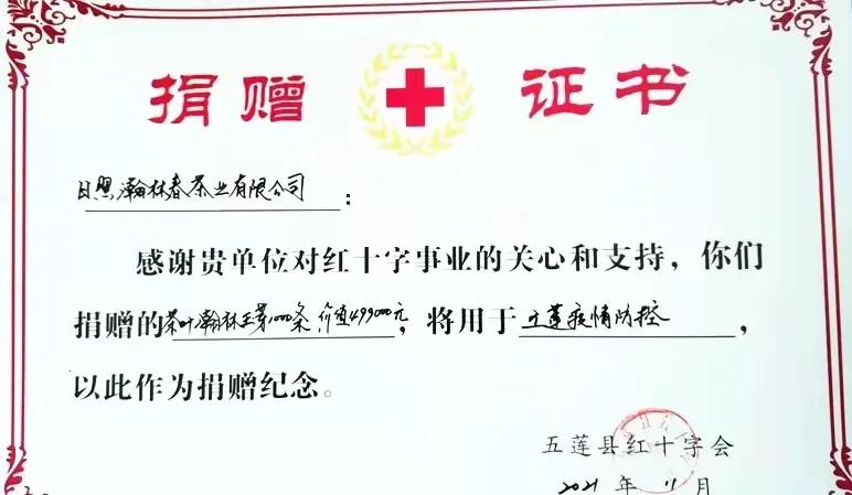 作为央视上榜品牌和日照绿茶领军品牌,瀚林春一直以强烈的社会责任感和使命感,投入到各项社会事业的发展建设中来。在这场没有硝烟的战役中,瀚林春以实际行动支持疫情防控工作,持续传递正能量,助力五莲人民战胜疫情。