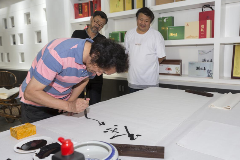 8月29日下午,出席“裕升置业杯”首届中国(日照)诗歌节的著名作家商震、黑丰、耿占春、蓝野等一行参观瀚林春有机茶博园。