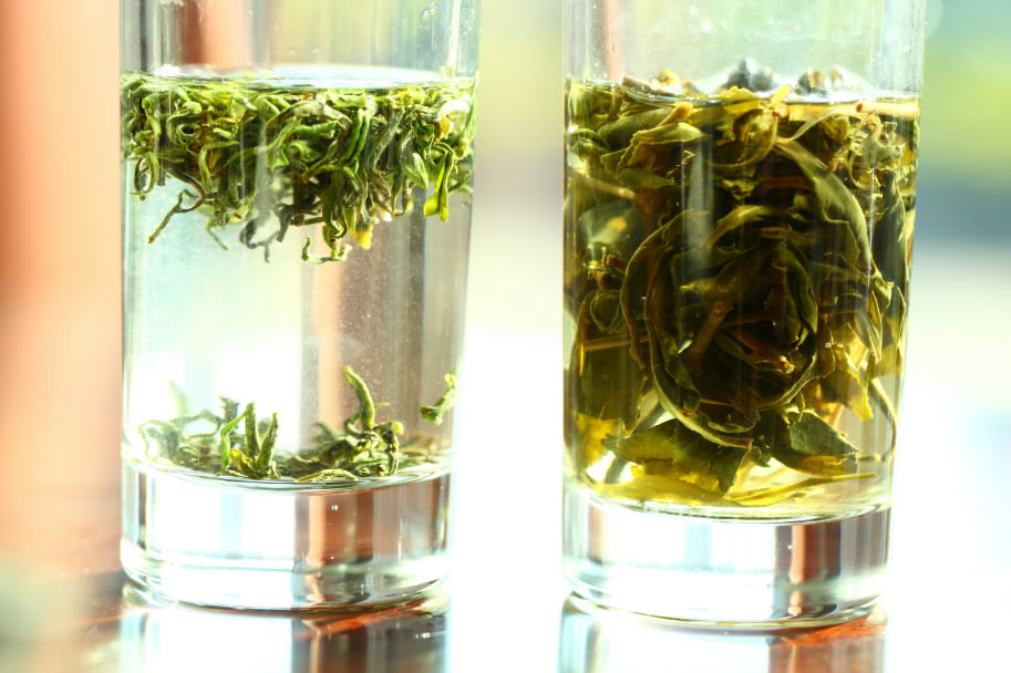 (1)卷曲形:外形:条索细紧、卷曲、匀整;不同级别茶叶色泽从翠绿到墨绿,但不得枯黄、断碎;内质:香气高,从鲜嫩到尚纯;汤色从嫩绿明亮到黄尚亮,但不得浑浊;滋味醇,无异味;叶底从明亮到尚亮,但不得花杂。